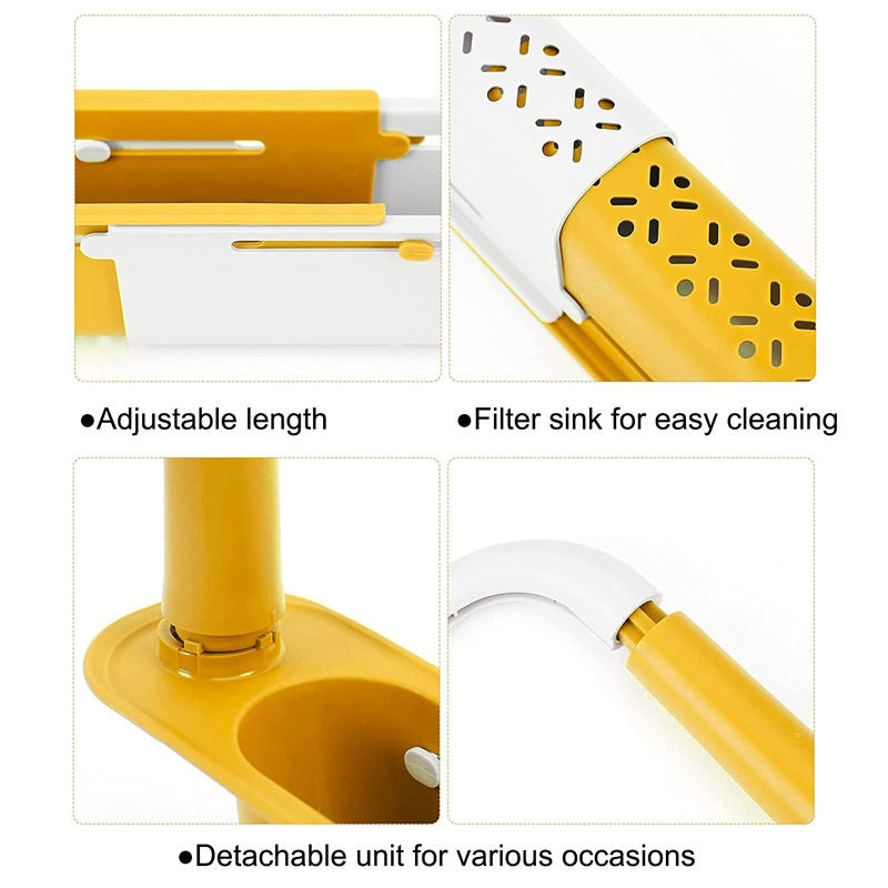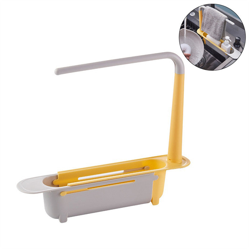 Telescopic Sink Storage Rack Dishcloth Sponge Draining Holder-Yellow