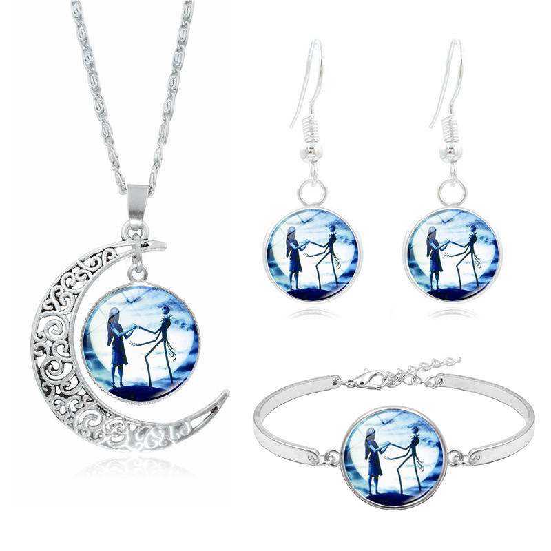 The Nightmare Before Christmas Moon Pendant Necklace Earrings Bracelet Charms Gift Set-1