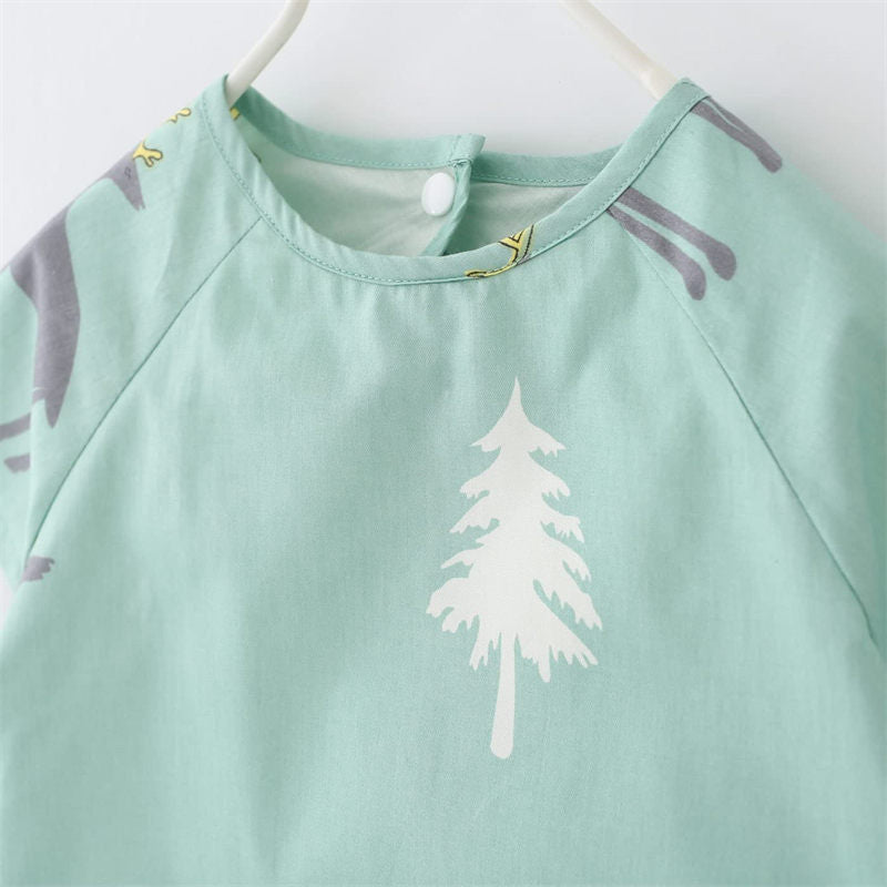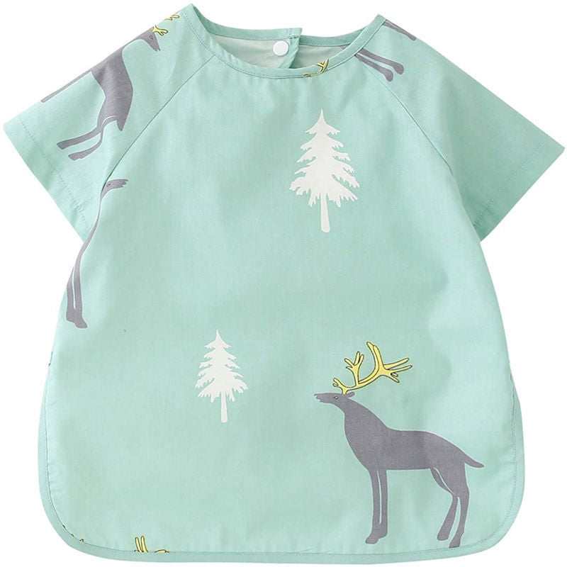 Toddler Short Sleeved Smock Cartoon Waterproof Apron for Feeding Painting-GreenElk