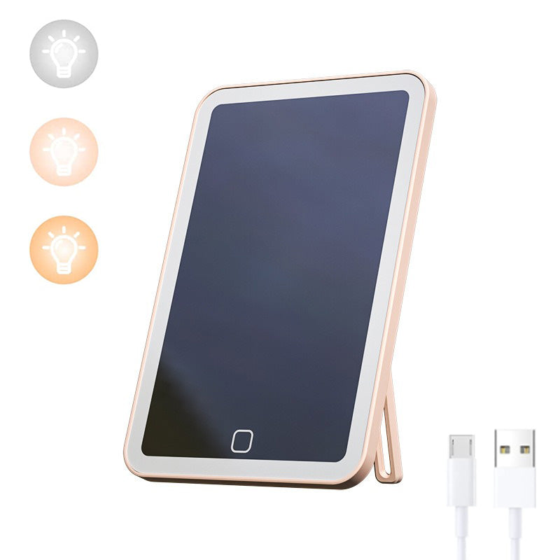 Travel Makeup Mirror 3 Color Lights Touch Screen Dimming Rechargeable-Pink