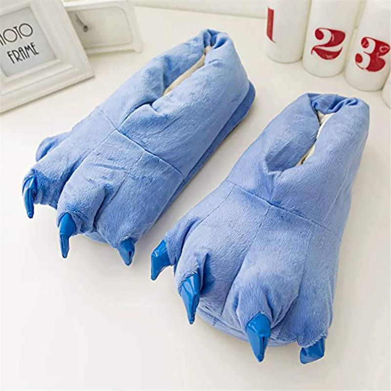 Unisex Soft Plush Home Slippers Animal Paw Claw Shoes-Blue