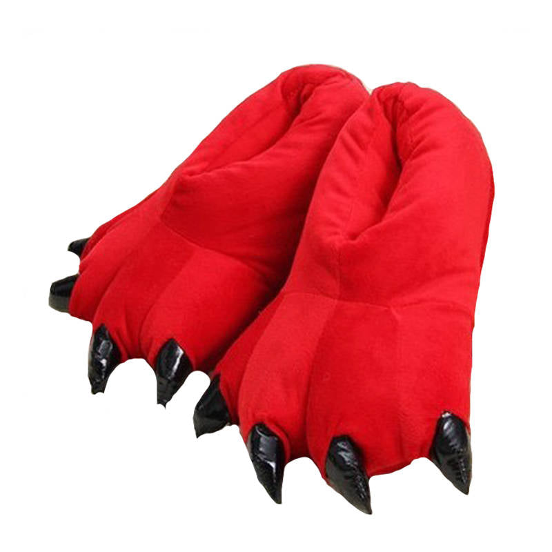 Unisex Soft Plush Home Slippers Animal Paw Claw Shoes-Red