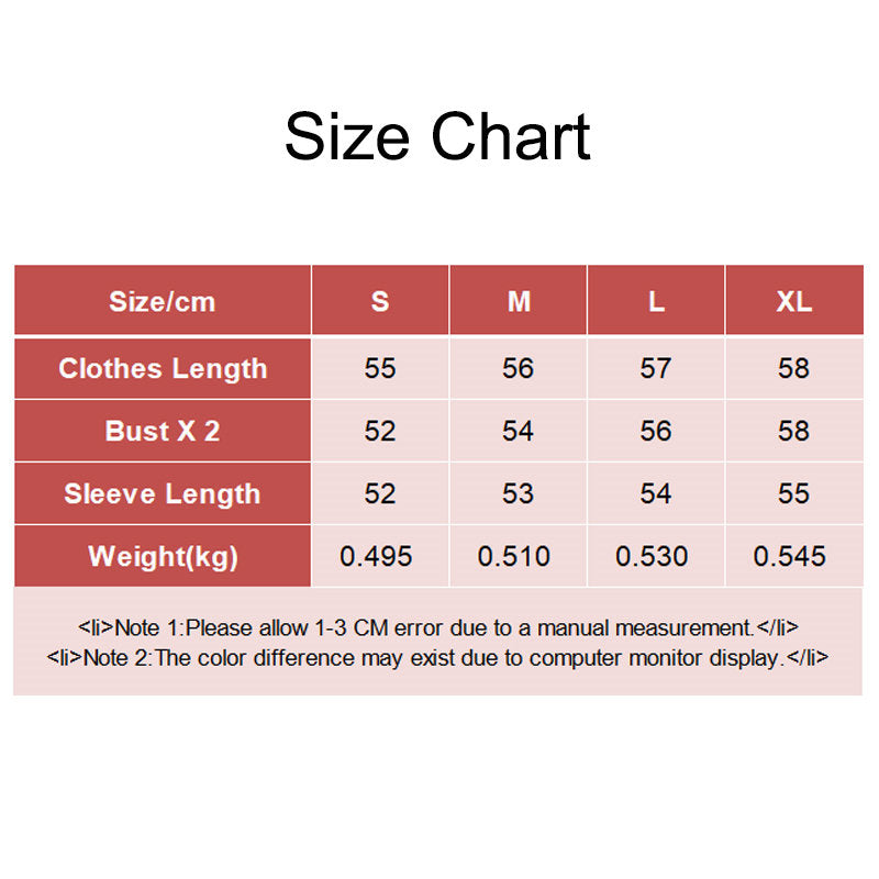 - Size: S/M/L/XL, Please choose the right size according to the size chart, we will ship according to your order.