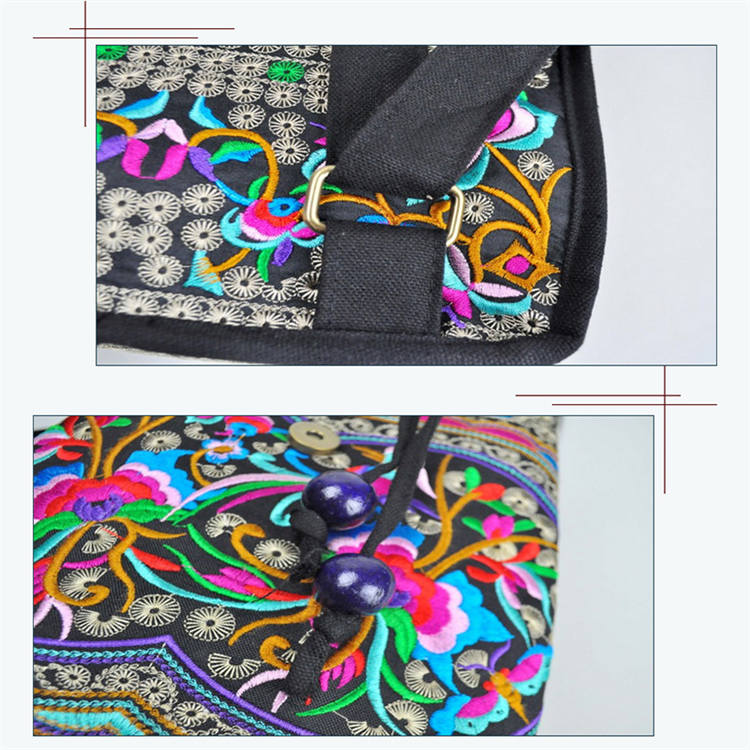 - Handmade flower embroidery bag. Attractive. Easy access and lightweight. The Strap can be adjusted.