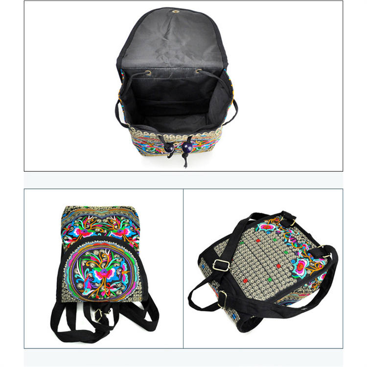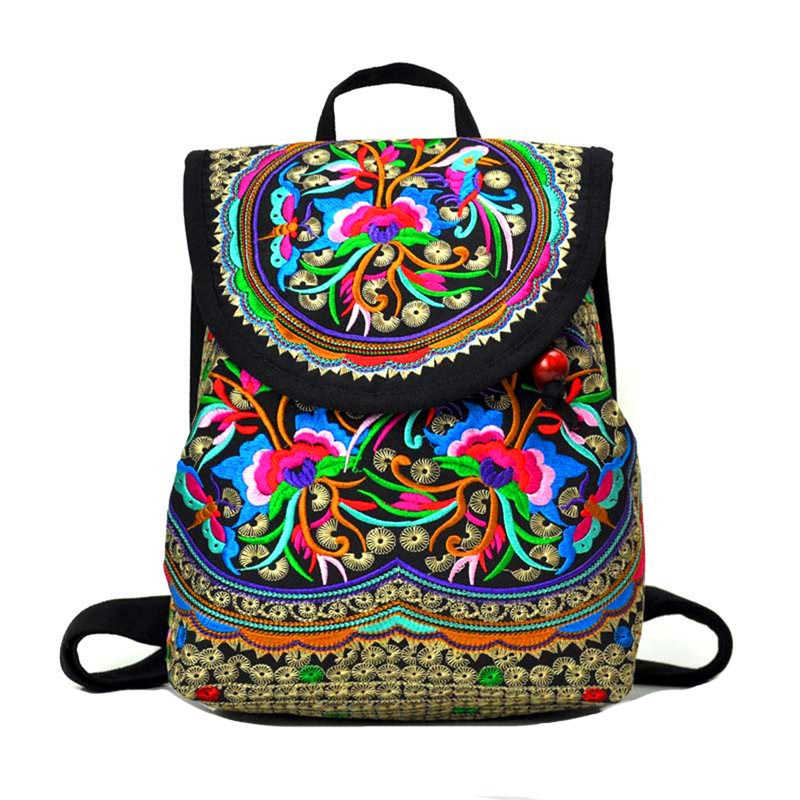 Vintage Embroidered Women Backpack Ethnic Travel Handbag-A