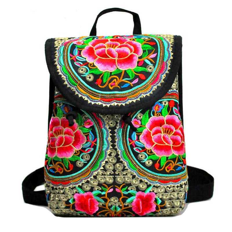 Vintage Embroidered Women Backpack Ethnic Travel Handbag-B