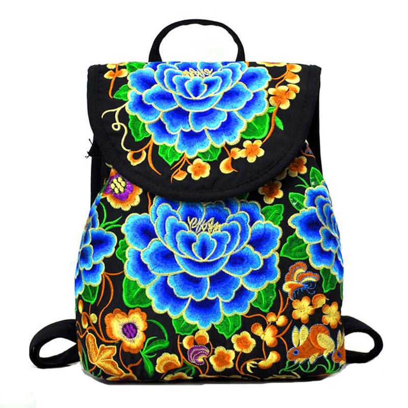 Vintage Embroidered Women Backpack Ethnic Travel Handbag-Blue Flower