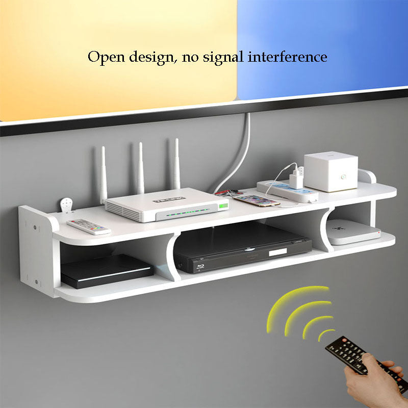 - Wide Use: Suitable for home or office to organize your projector, set-top box, router, gamer console, DVD player, Remotes etc. Wall-mounted bracket saves space.