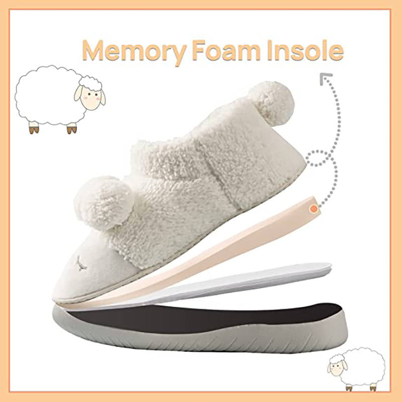 Warm Indoor Slippers for Women Fleece Winter Boots-White