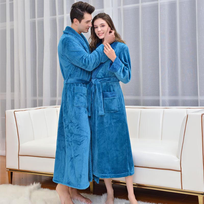 Warm Soft Plush Robe with Pockets for Unisex-Sea Blue