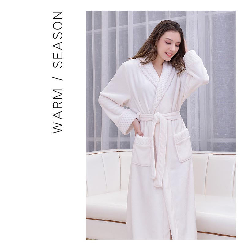 Warm Soft Plush Robe with Pockets for Unisex-White