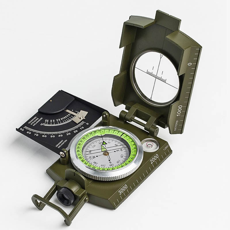 - Multifunction.Floating compass dial with 360¡ã scale,adjustable prism lens,Fold metal lid£¬Compass with clinometer, enable to measure height and slopes.There is also a design for night vision at night.