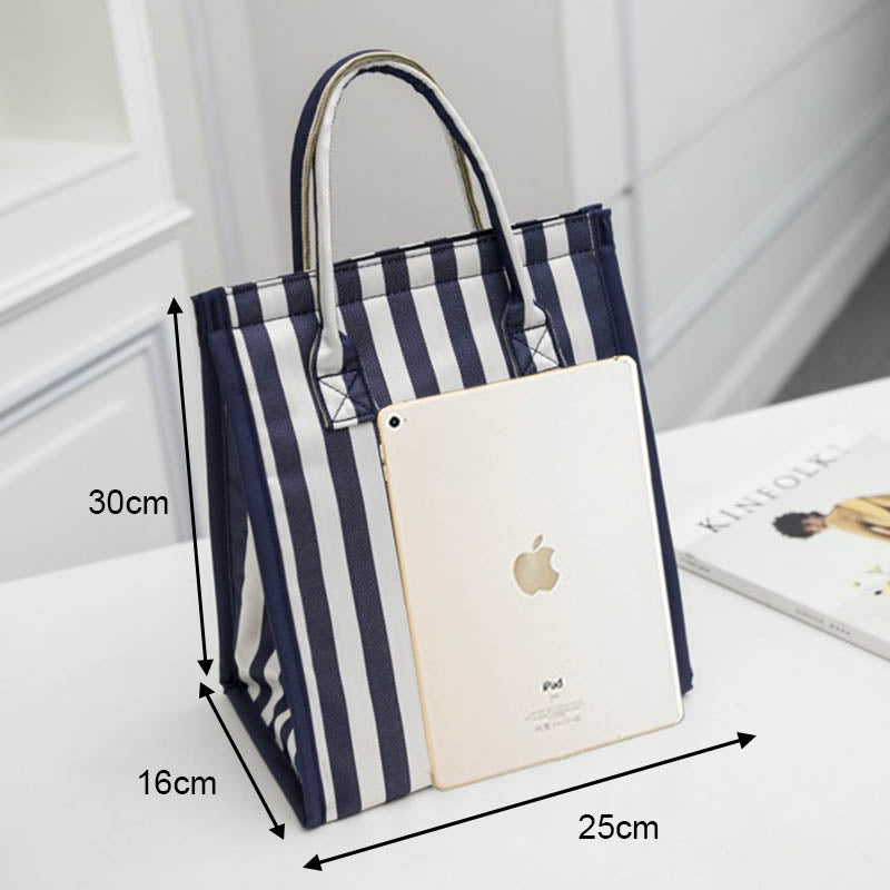 Waterproof Portable Lunch Bento Bag Velcro Insulated Picnic Handbag-Blue Stripes