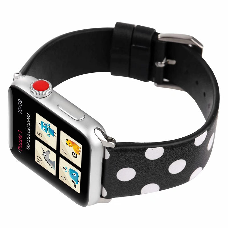 Wave Point Leather Watch Band for Apple Watch Series SE/6/5/4/3/2/1-BlackWhite