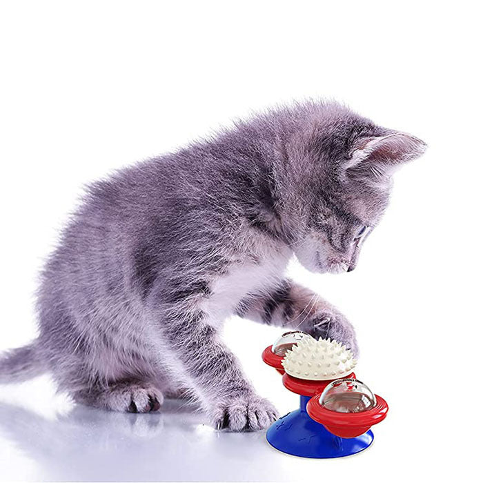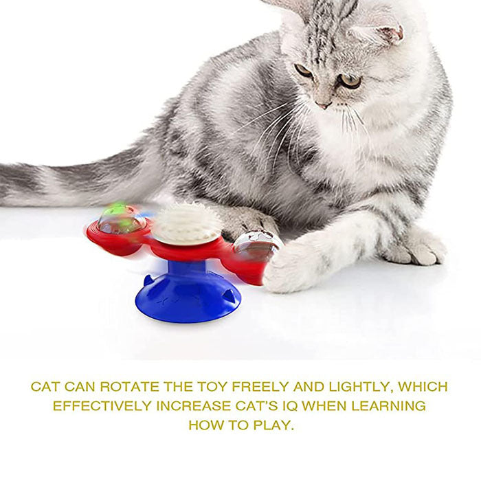 - When this windmill cat toy is gently touched, it will rotate freely, attracting your cat to play and bite. Cat plays a windmill toy that can reduce anxiety and increase IQ. If the toy can?¡¥t rotate smoothly, pls adjust the bearing up and down slightly.