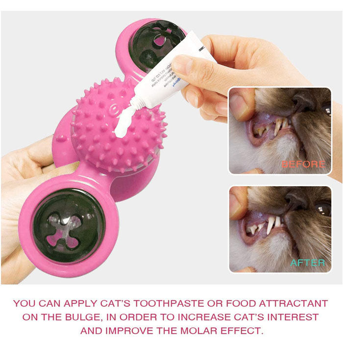 - This is a self-grooming aid for cats which is designed according to the cat's lifestyle softer silicone bristles, ensuring gentle grooming and massage without painful fur removal or scratches on the cat's skin. What's more, by squeezing the toothpaste on top, the cat will bite them to deeply clean their teeth, it doesn?¡¥t harm the cat's teeth.