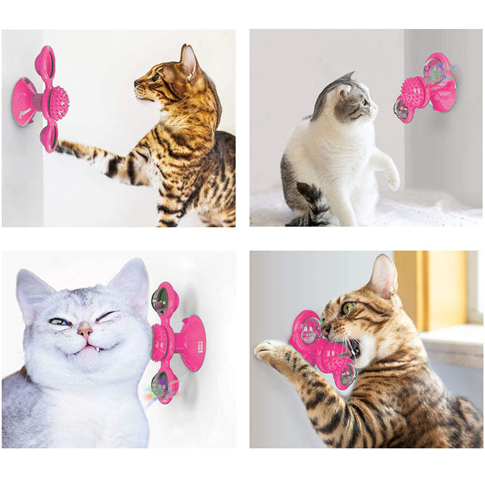 - When this windmill cat toy is gently touched, it will rotate freely, attracting your cat to play and bite. Cat plays a windmill toy that can reduce anxiety and increase IQ. If the toy can?¡¥t rotate smoothly, pls adjust the bearing up and down slightly.