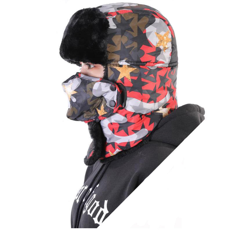 Winter Hats for Men Windproof Warm Hat with Ear Flaps for Skiing And Outdoor Riding-Star Red