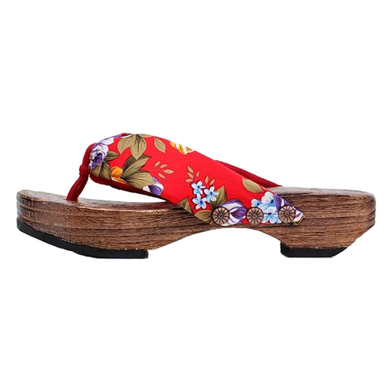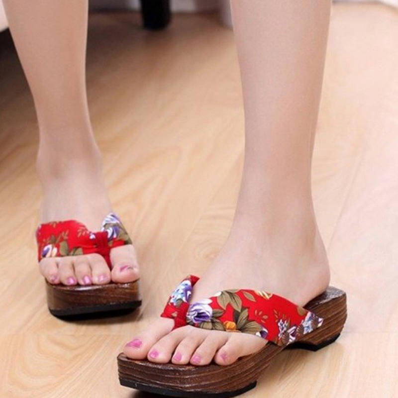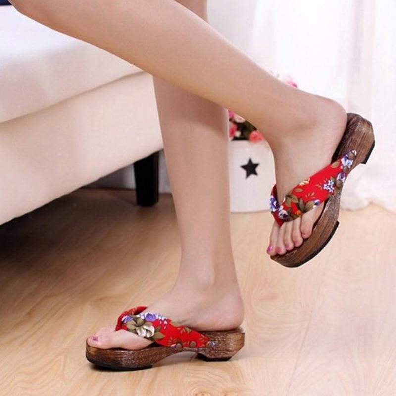 Womans Japanese Traditional Slip On Clogs Flip Flop Sandals-Red