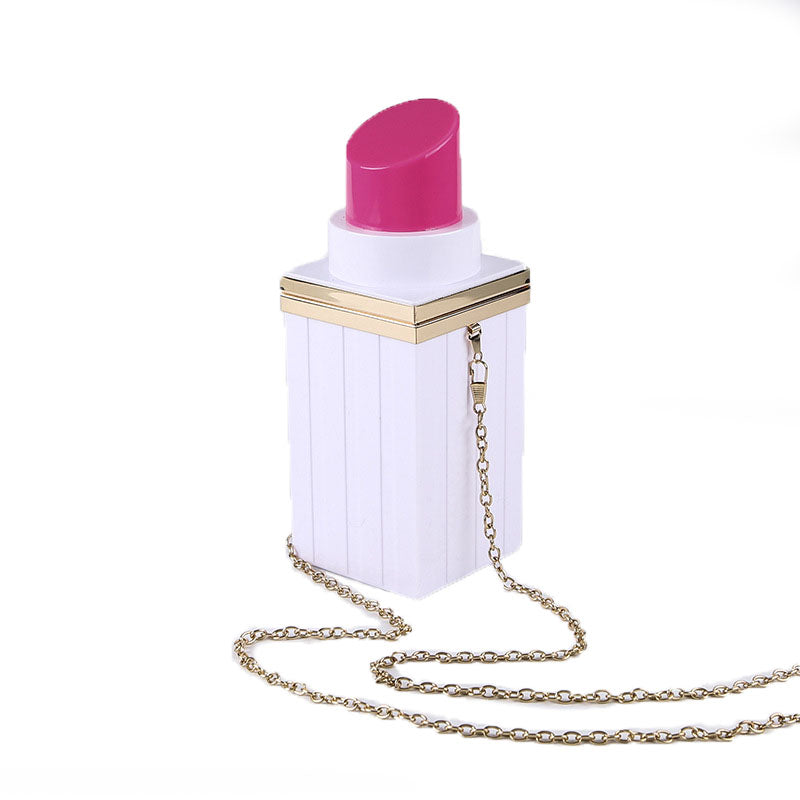 Women Acrylic Lipstick Shape Evening Purses Vintage Banquet Handbag-White Pink