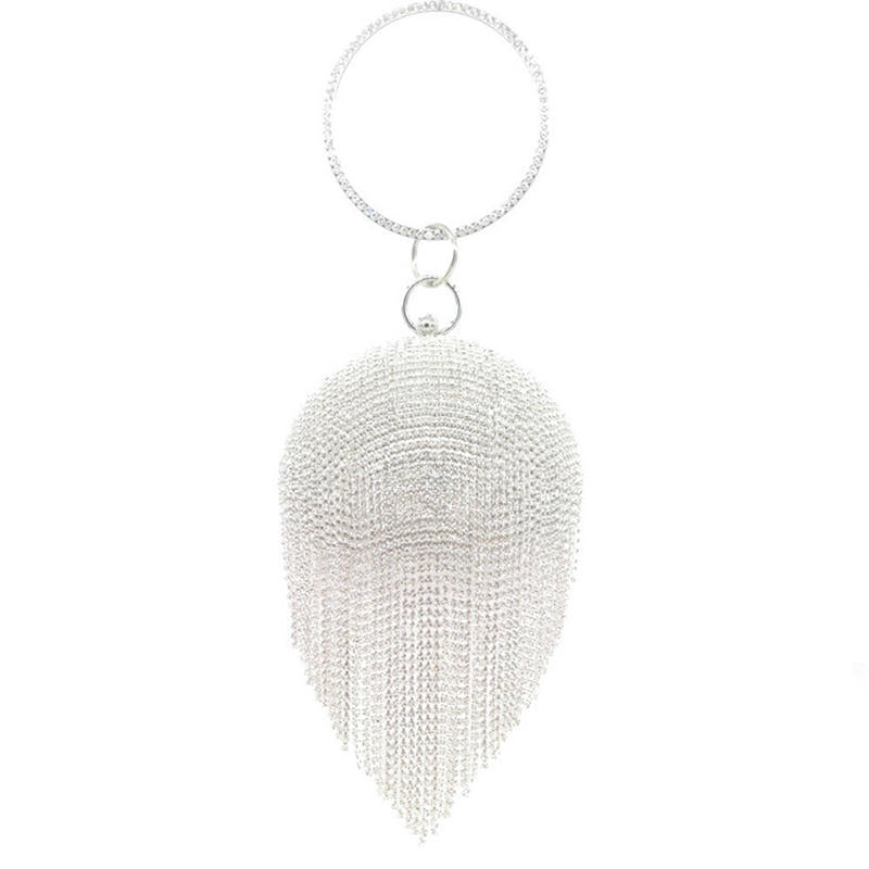 Women Crystal Tassel Evening Clutch Bag Rhinestones Party Wedding Handbag-Silver