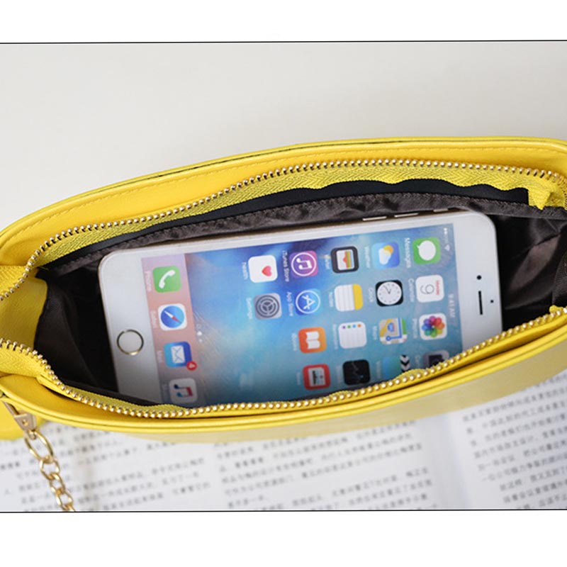 - A cute 3d three-dimensional bag with a metal chain that can be used as a crossbody bag.