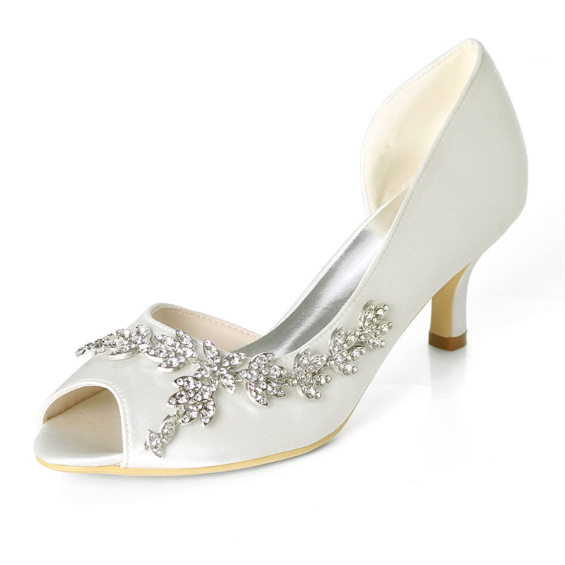 Women Wedding Heels Peep Toe Rhinestones Shoes-White