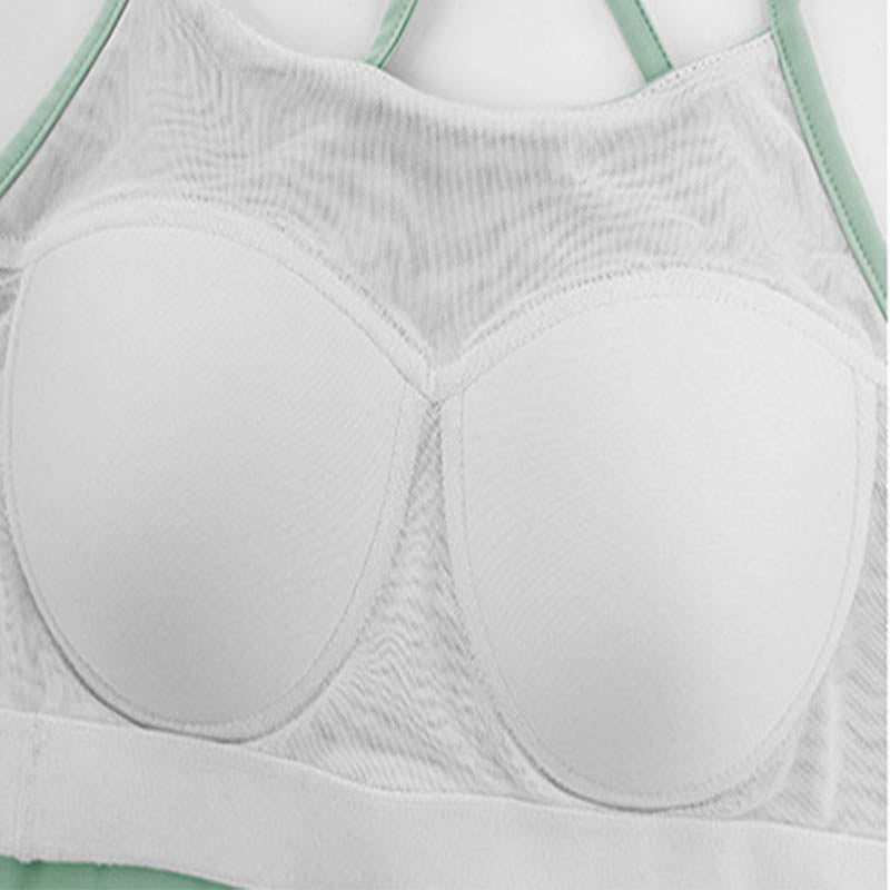 - The X-shaped shoulder strap design allows you to exercise at ease without slipping your shoulders. The inner layer is spliced with a breathable mesh to make you refreshing, comfortable and not sticky. There is also a fixed chest pad for easy putting on and taking off, stable and non-shifting.