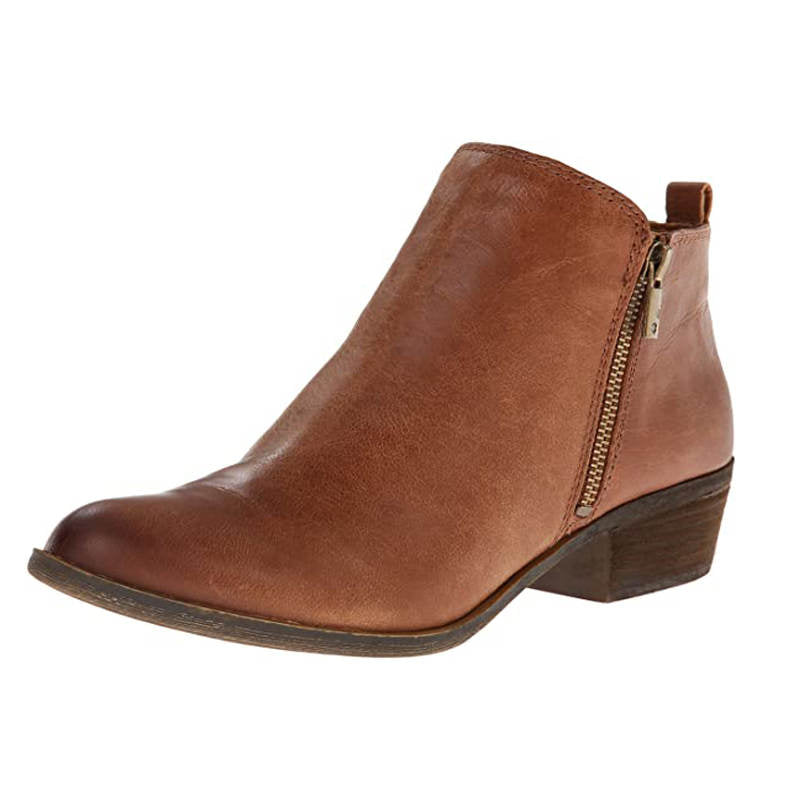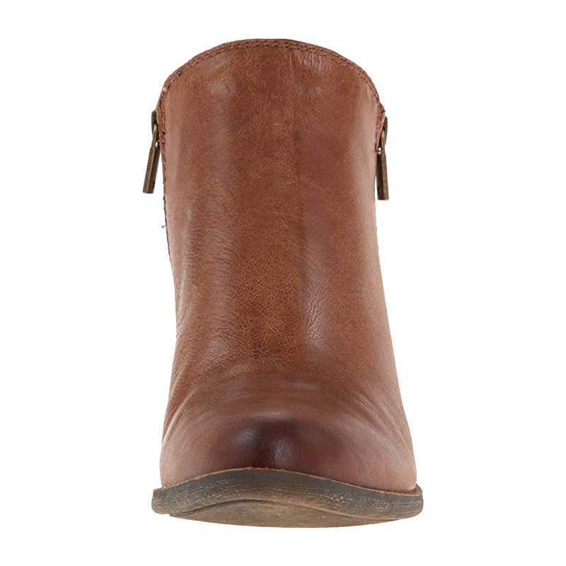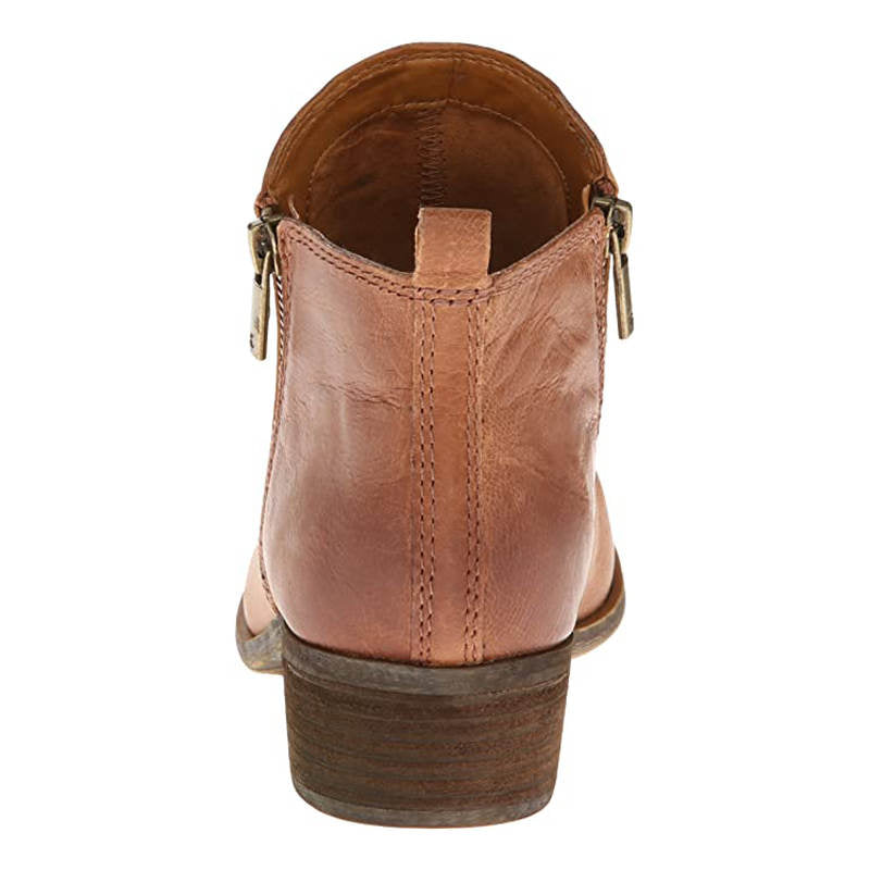 Womens Boots Low Heel Bootie Side Zipper-Brown
