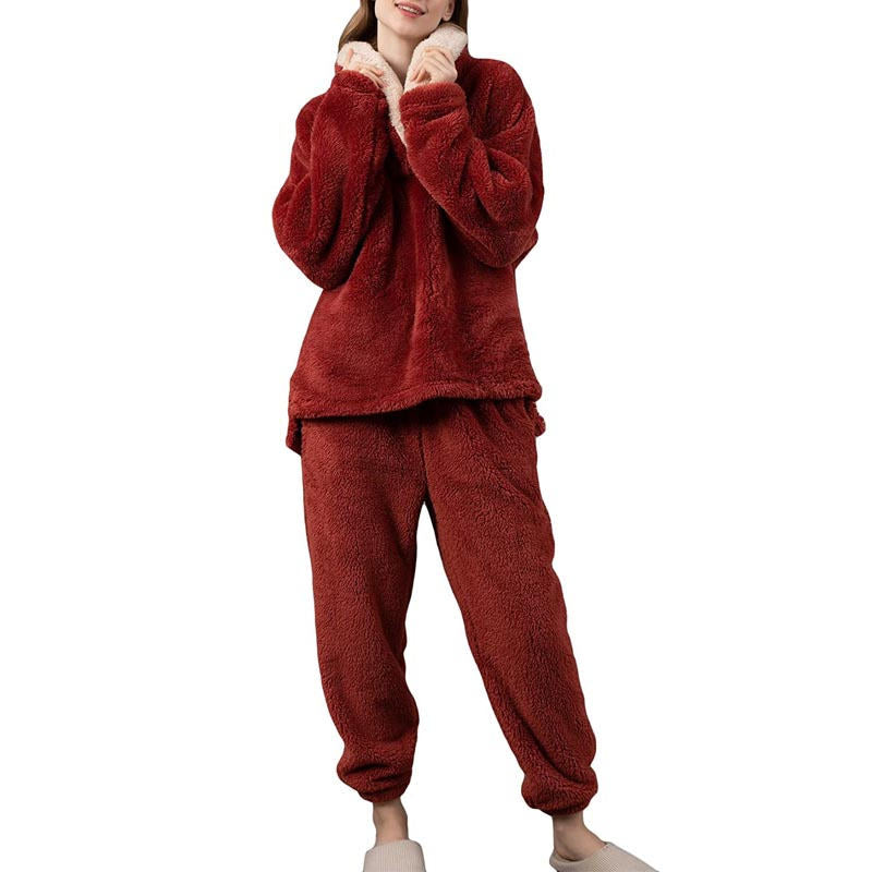 Womens Coral Fleece Oversized Pajamas Set-Red