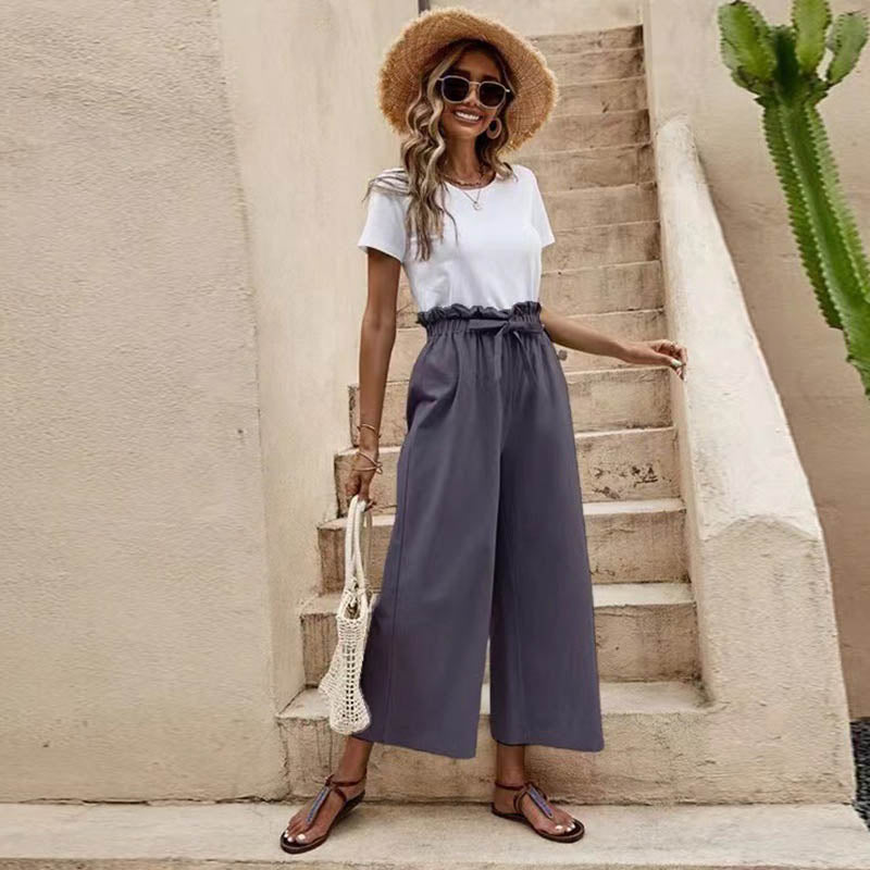 - Use a bow as an elastic waistband, free and loose wide-leg trousers style, it is one of the must-have loose trousers for home.