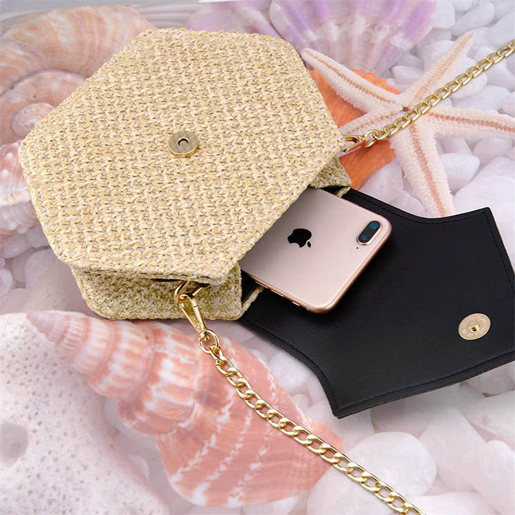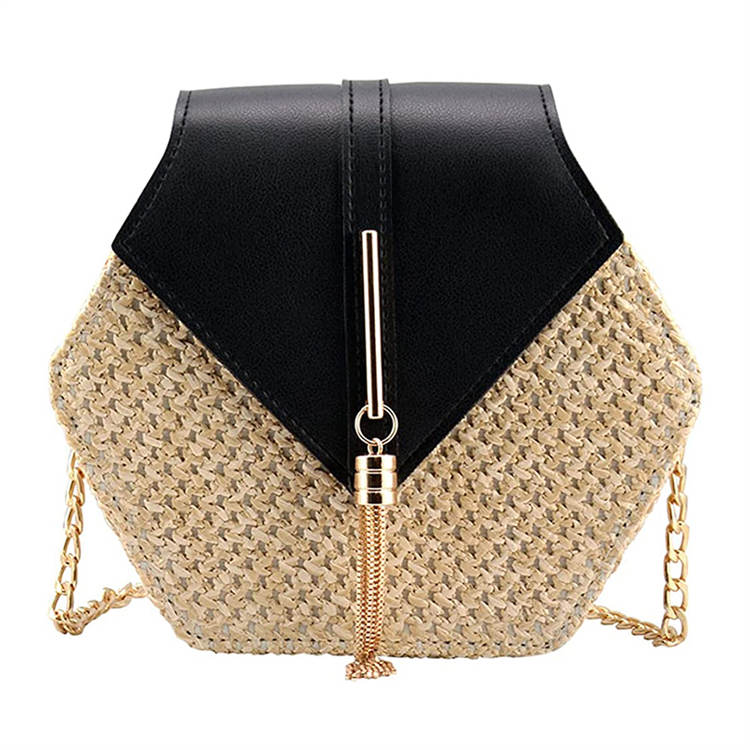 Womens Crossbody Cute Straw Shoulder Bag-Black