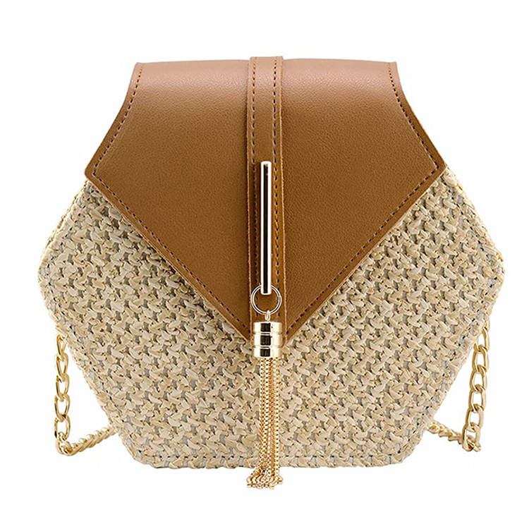 Womens Crossbody Cute Straw Shoulder Bag-Brown