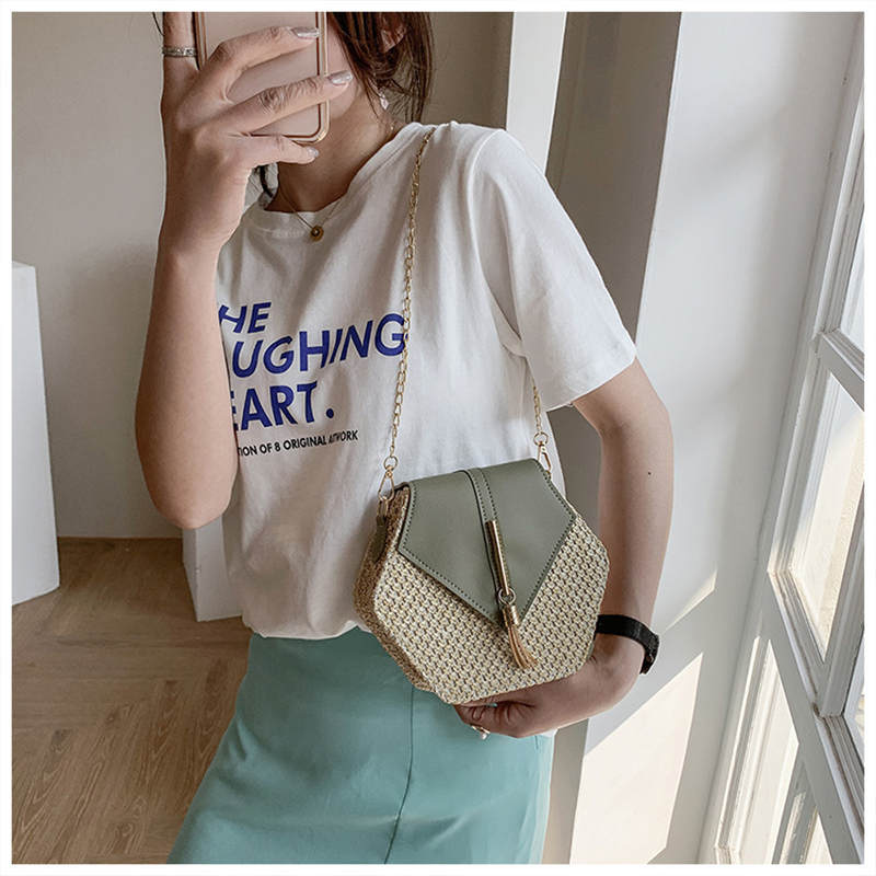 Womens Crossbody Cute Straw Shoulder Bag-Green