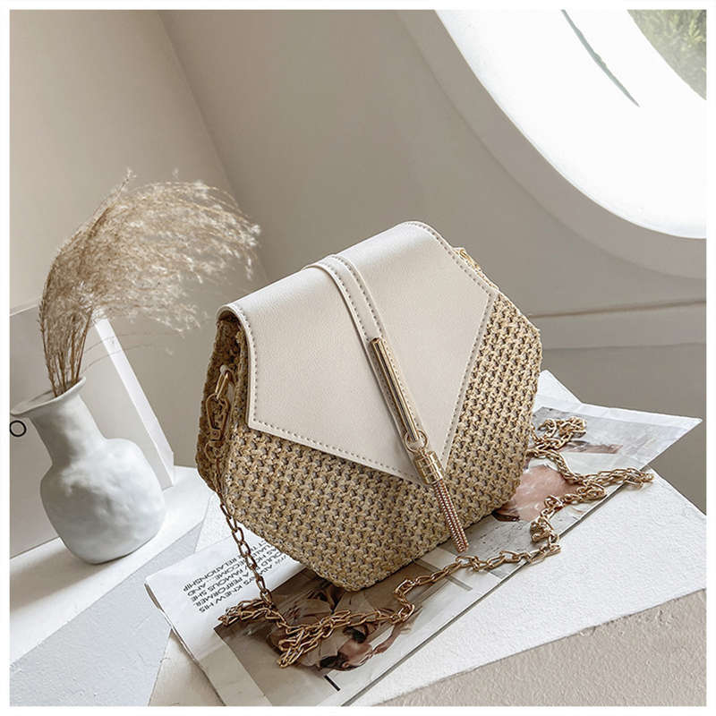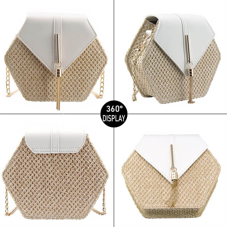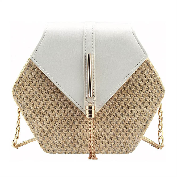 Womens Crossbody Cute Straw Shoulder Bag-White