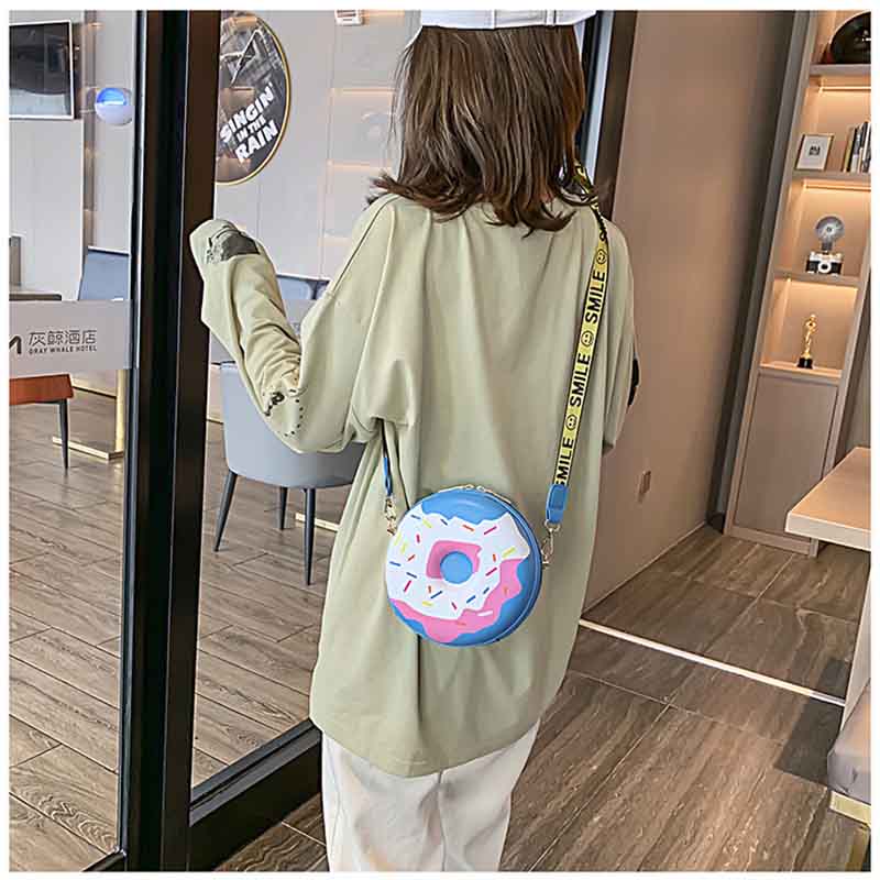 Womens Doughnut Crossbody Purse PU Shoulder Bag-Blue