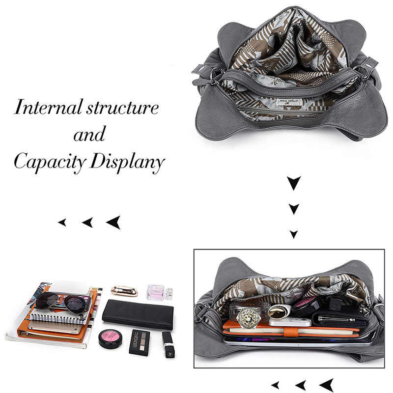 Womens Fashion Hobo Handbag Large Capacity Shoulder Bags-SilverGrey