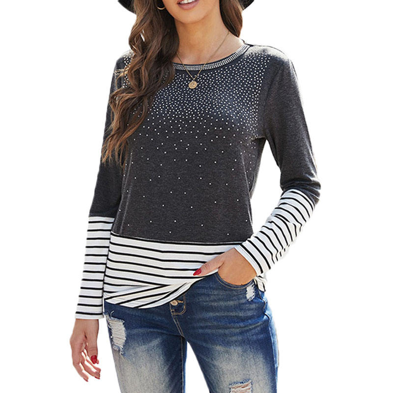 - Women's long-sleeved tops, women's color-blocking T-shirts, striped T-shirts, O-neck, lightweight, casual and fashionable.