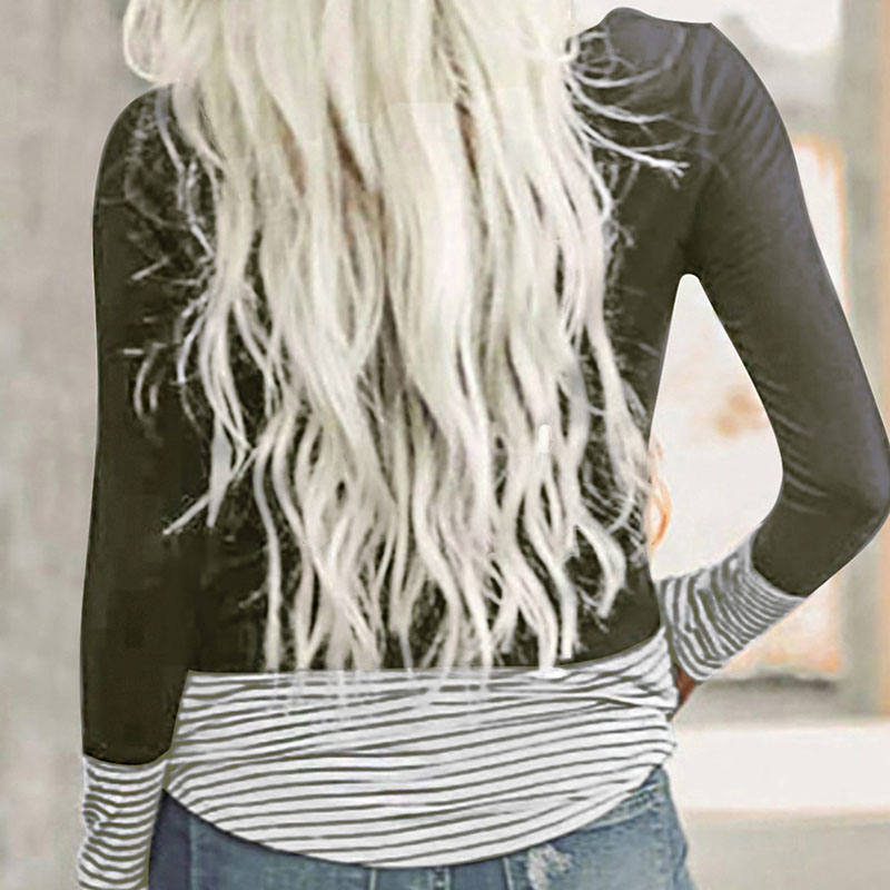 - Women's long-sleeved tops, women's color-blocking T-shirts, striped T-shirts, O-neck, lightweight, casual and fashionable.