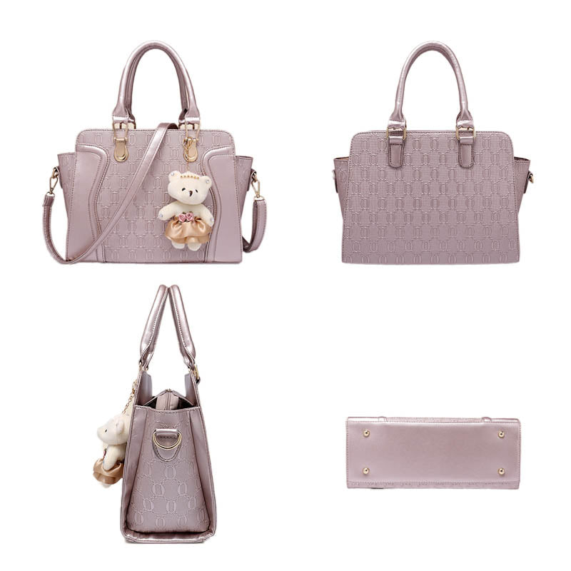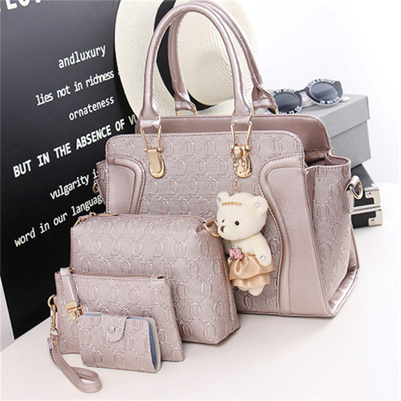 Womens Four-piece Fashion Handbags Shoulder Bag Satchel Purse Set-RoseGold