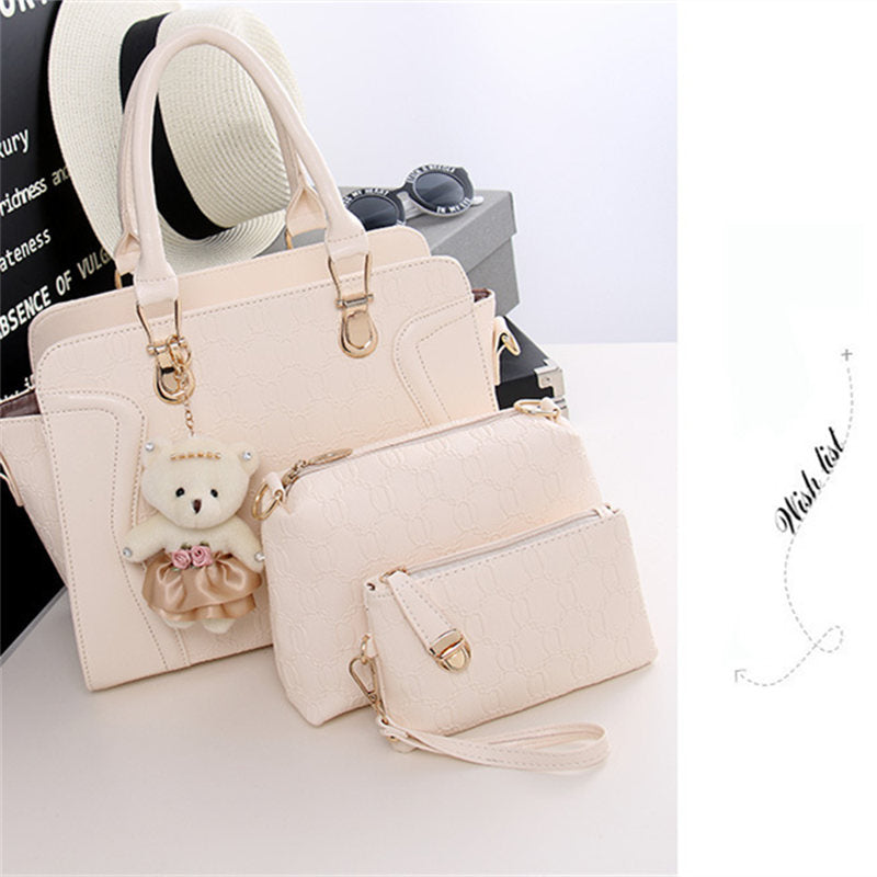 Womens Four-piece Fashion Handbags Shoulder Bag Satchel Purse Set-White