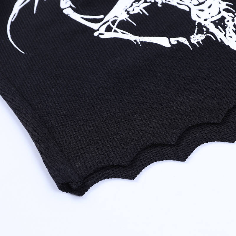 Womens Gothic Punk Crop Tank Skull Print Tunic Tube Tops-Black