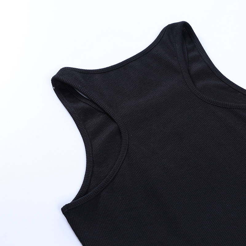 - Slim casual style, high-strength stretch knit vest, Harajuku/Gothic print on the front, short length.