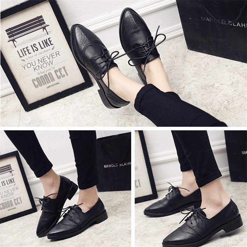 - Good Quality & Comfortable: This women's brogues Shoes are made of PU leather. To earn a classic look and comfortable fitting. Slip-on brogue, adjustable lace-up easy to take on & off.