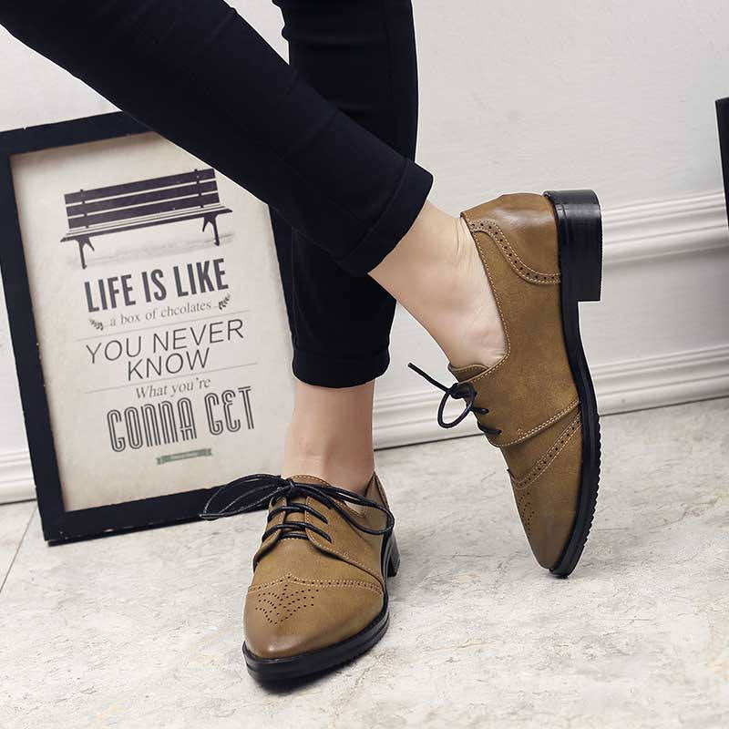- Good Quality & Comfortable: This women's brogues Shoes are made of PU leather. To earn a classic look and comfortable fitting. Slip-on brogue, adjustable lace-up easy to take on & off.