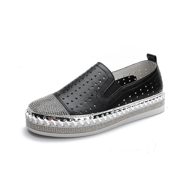 Womens Loafers Glitter Breathable Slip on Flat Sneaker-Black