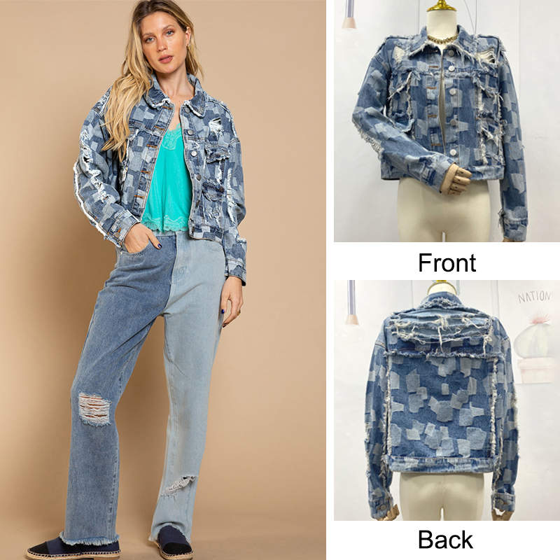 - Unique Design: Constructed with comfort in mind, this women's denim jackets has a classic fit. Vintage checkerboard short denim jackets are with frayed and ripped holes cut off design make you look unique in the crowd. It has the classic lapel and button up design with two pockets on the chest is never out of date style.