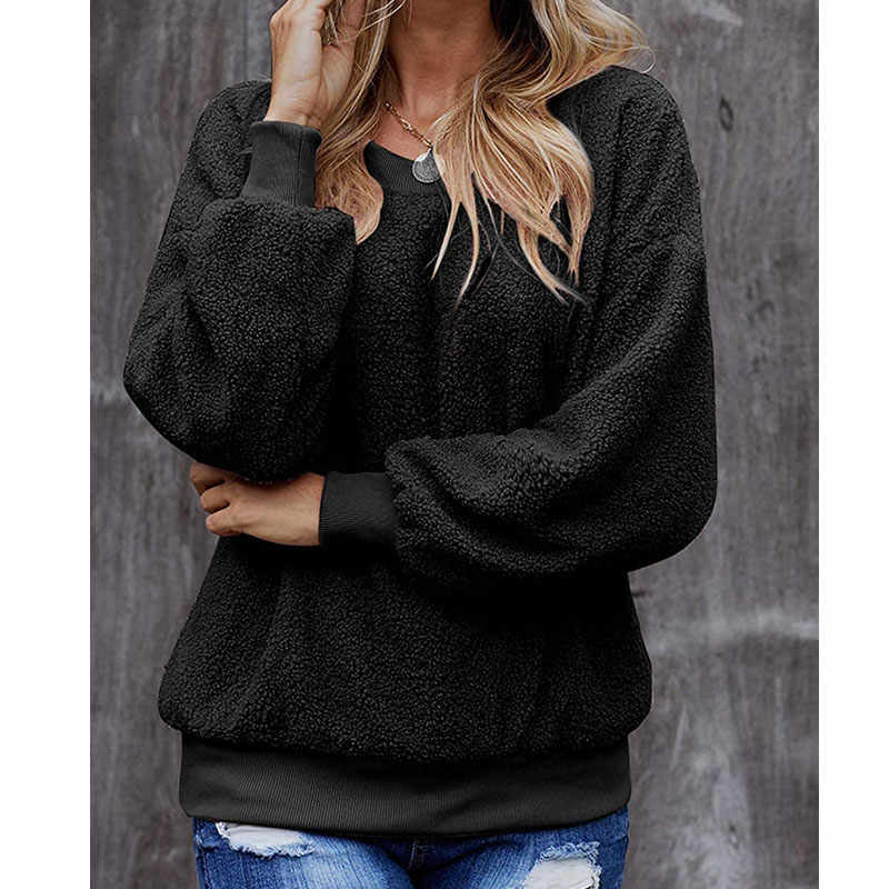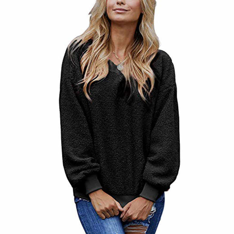- Style: Long sleeves, casual loose, no pockets, round neck, solid color, dropped shoulders, ribbed edges and cuffs, fluffy surface, loose and comfortable, warm lamb wool, comfortable and comfortable.