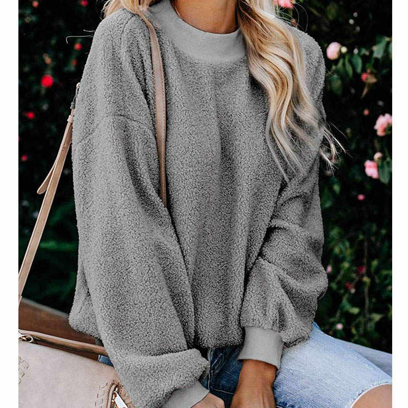 - Style: Long sleeves, casual loose, no pockets, round neck, solid color, dropped shoulders, ribbed edges and cuffs, fluffy surface, loose and comfortable, warm lamb wool, comfortable and comfortable.