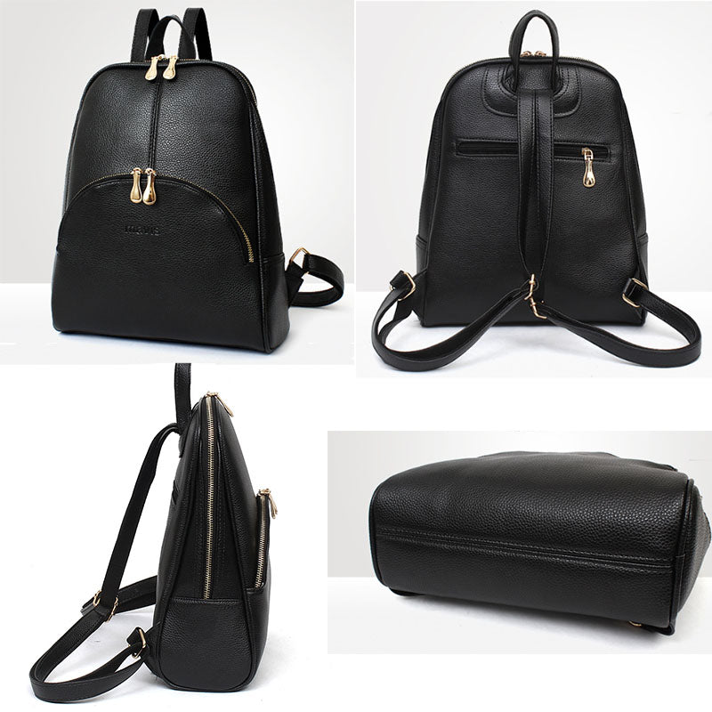 Womens Soild Backpack PU Leather Zipper Casual Travel Bags-Black